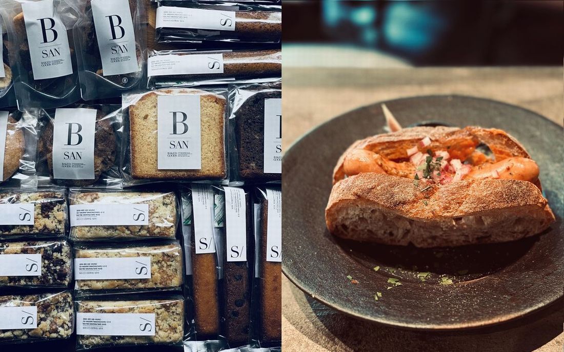 大阪桜川の食堂 SANです。 ホットドッグを持ってきました!焼き菓子もチーズケーキも焼いてきましたので腹ごなしに、お土産にどうぞー