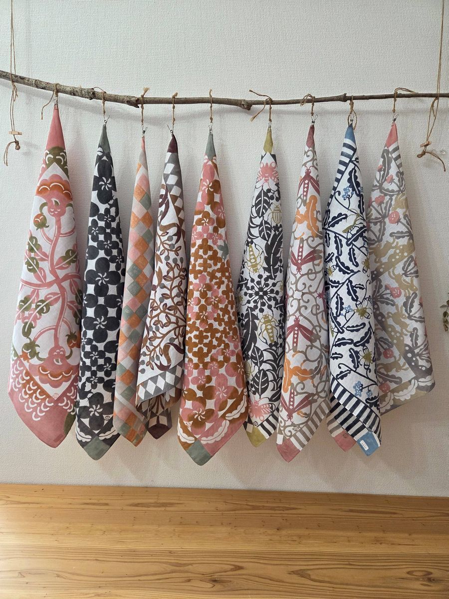 ベンガラ染料を使用して、型染め技法を中心に、バンダナやアートパネル、