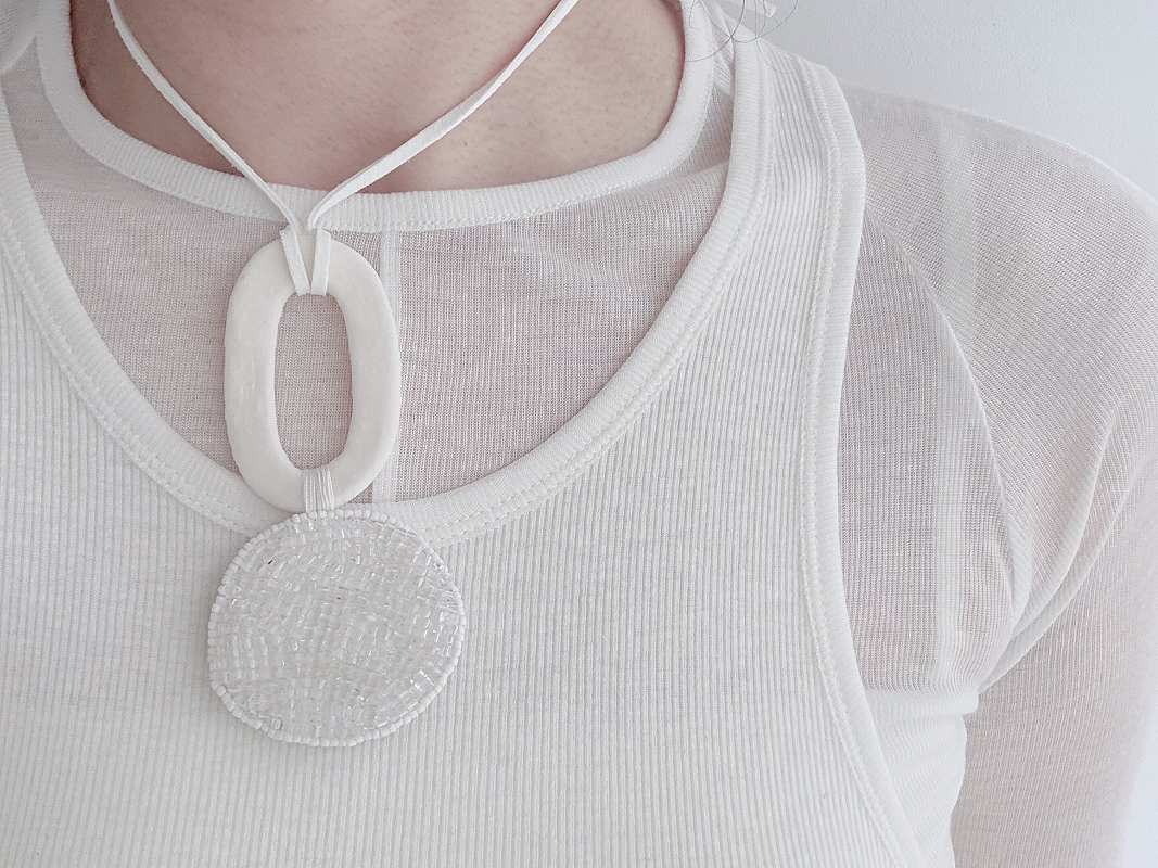 作品の余白があることを意識し、工藝とファッションとアートの間にあるような物作りを心掛けております。