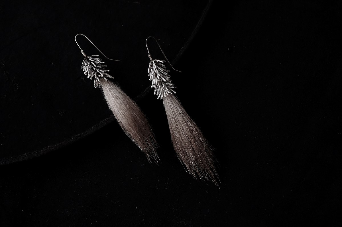 金属や鹿の美しい毛皮などを使用し、古くから山に伝わる神話や山と人々との深い関わりを軸に装身具を制作しています。