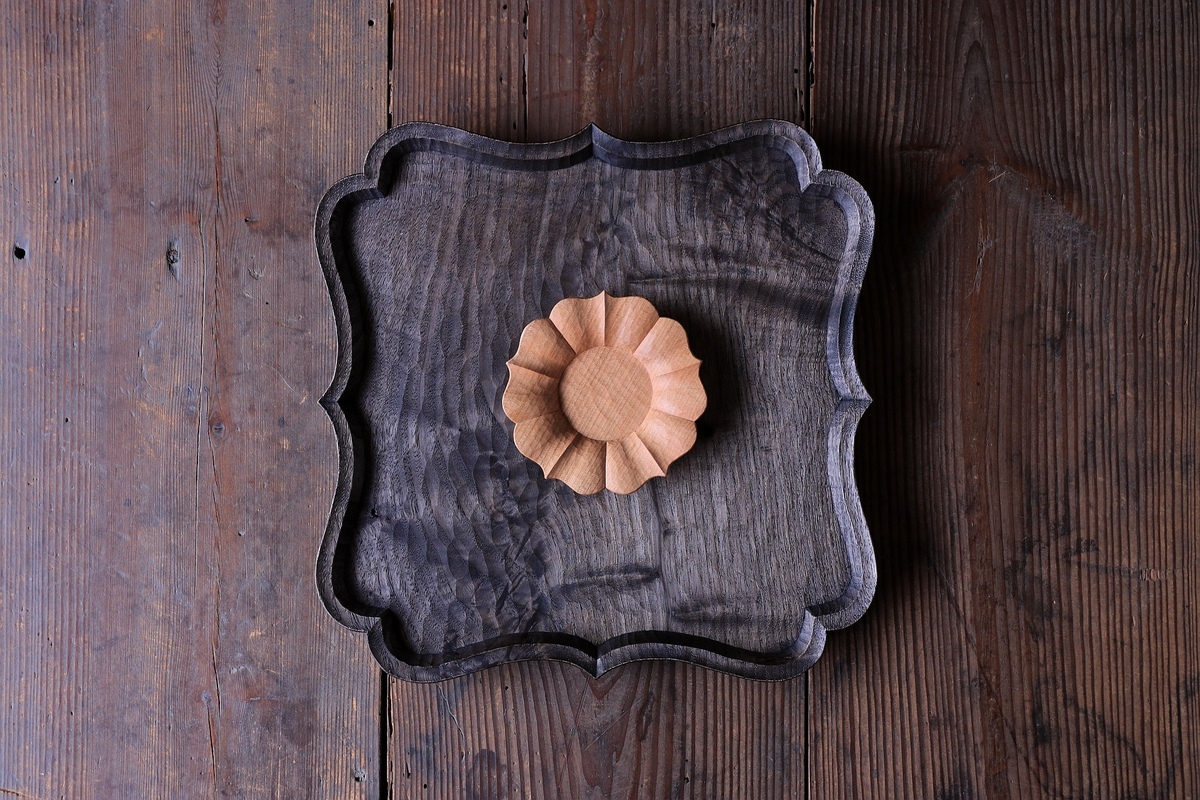 飛騨産のクリ、クルミ、山桜などを使用し、生活道具を制作しています。 稜花の皿やお盆をメインに出品予定です。